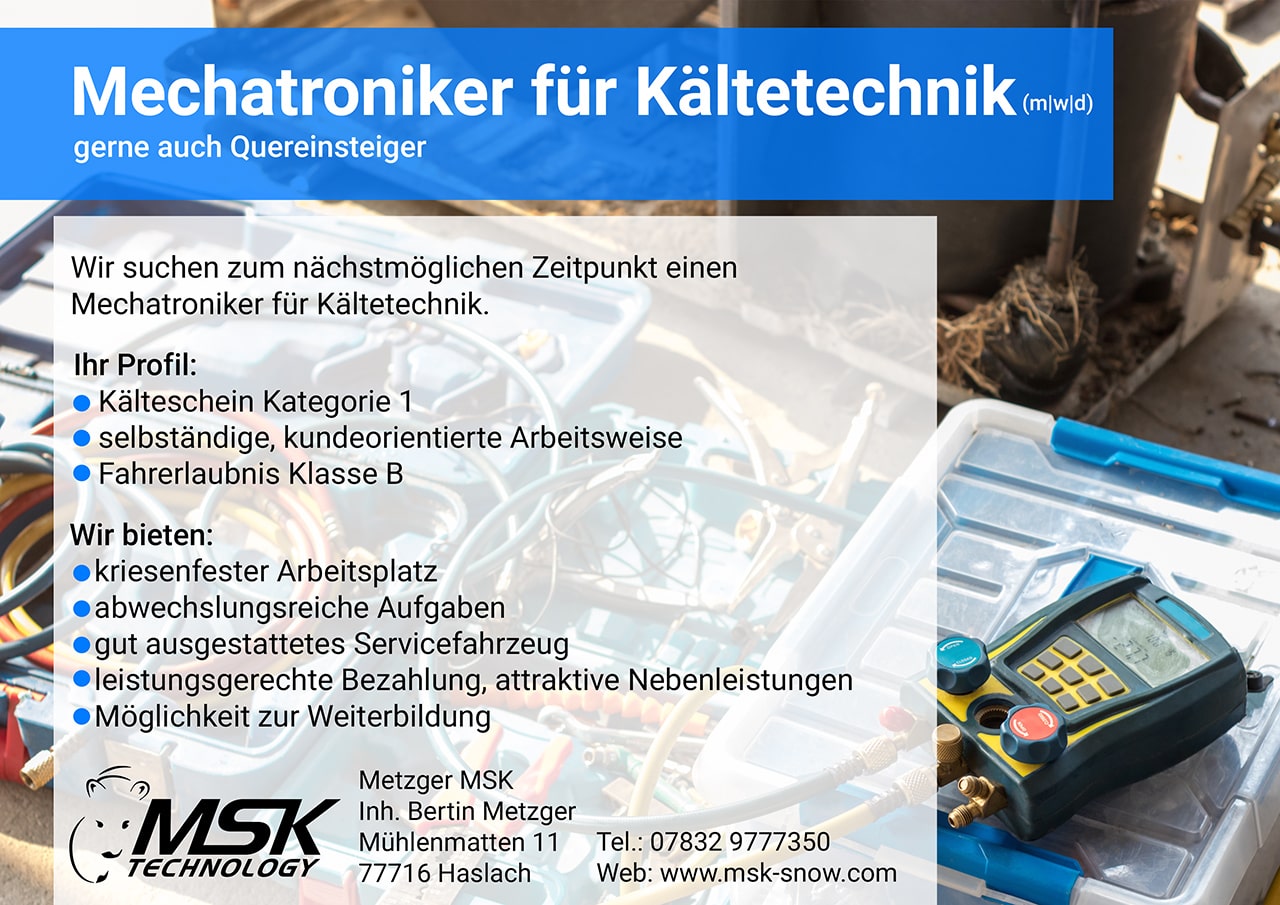 Wir suchen zum nächstmöglichen Zeitpunkt einen Mechatroniker für Kältetechnik (m|w|d).